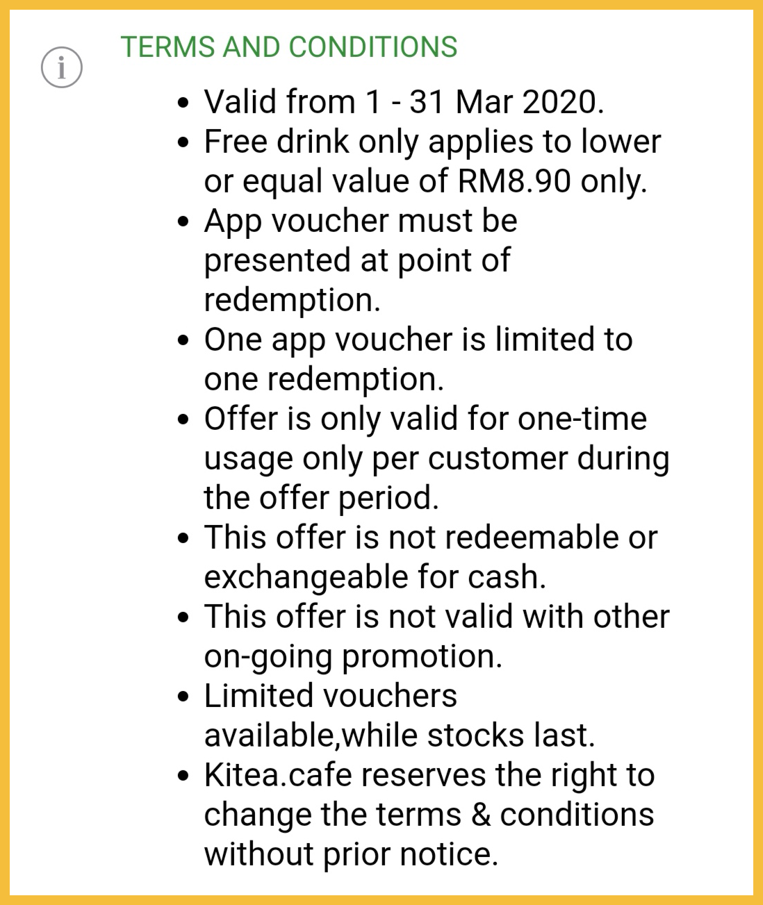 促销地点:大马 Kitea.Cafe 分行