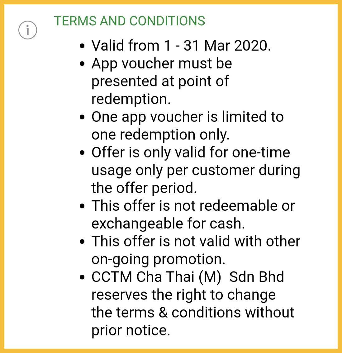 - 必须展示该优惠券给柜台人员