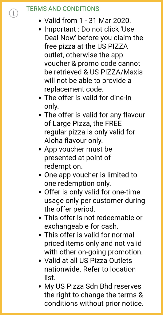 促销地点:大马 US Pizza 分行