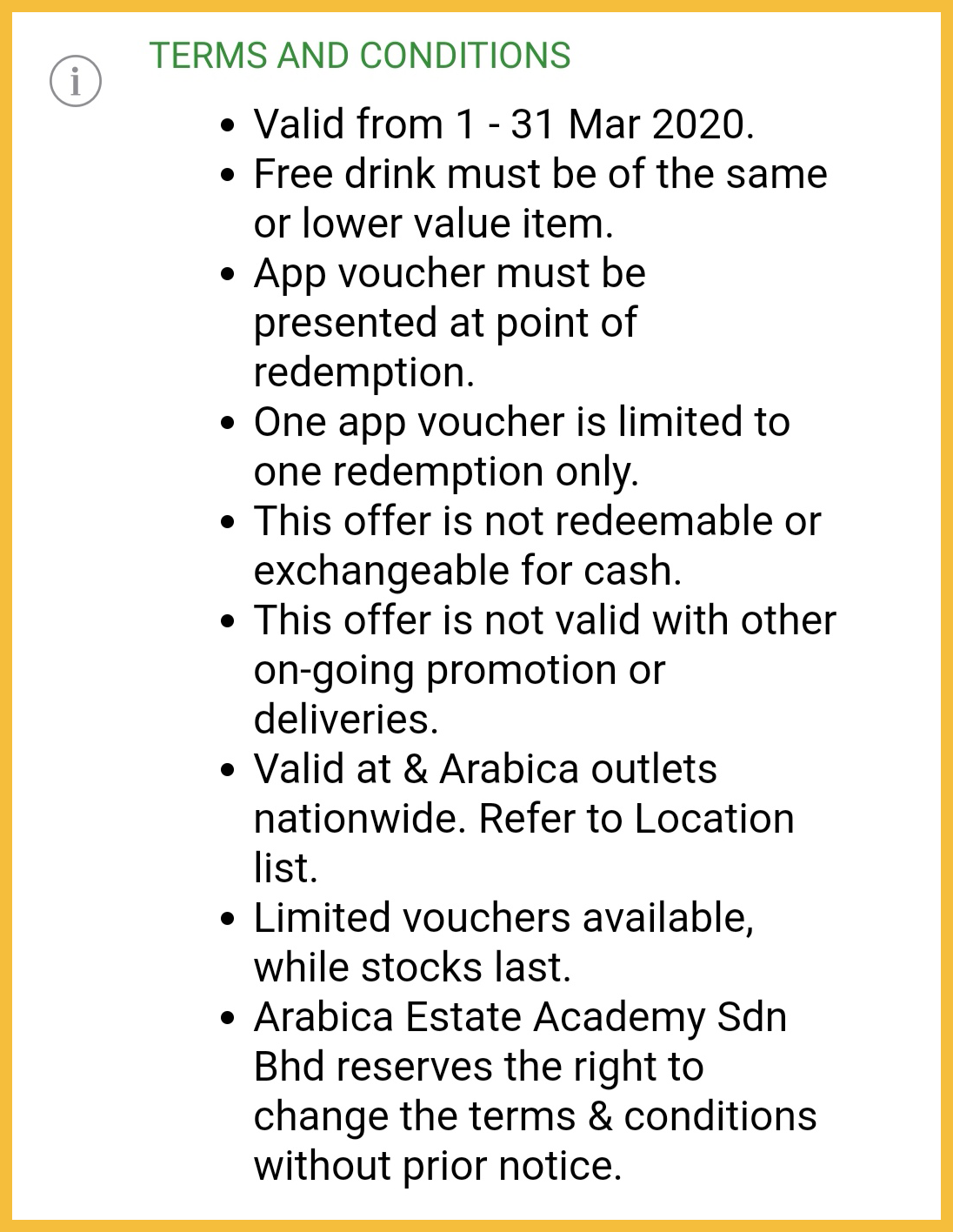 促销地点:大马 &ARABICA 分行