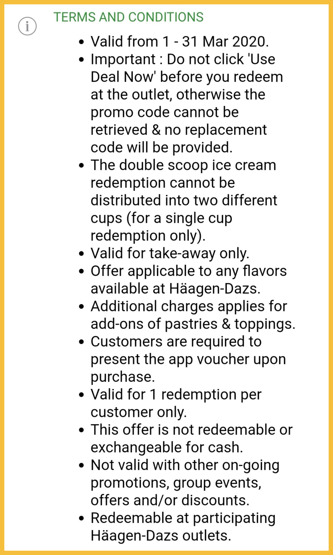 促销活动:Haagen-Dazs —— 购买1 Scoop冰淇淋,可额外免费多1 Scoop冰淇淋