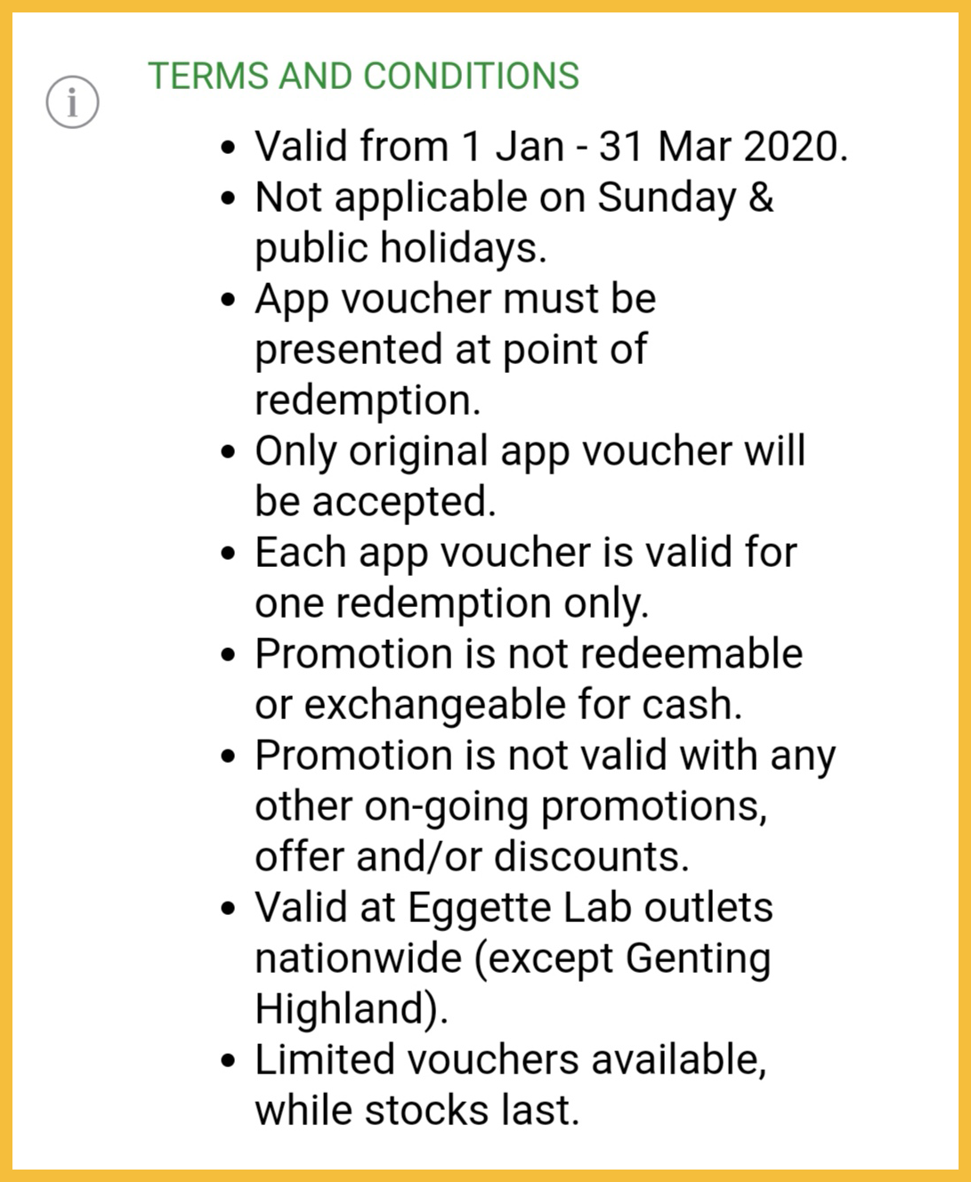 促销日期:即日起至 31 Mar 2020 (除了星期日和公共假期)