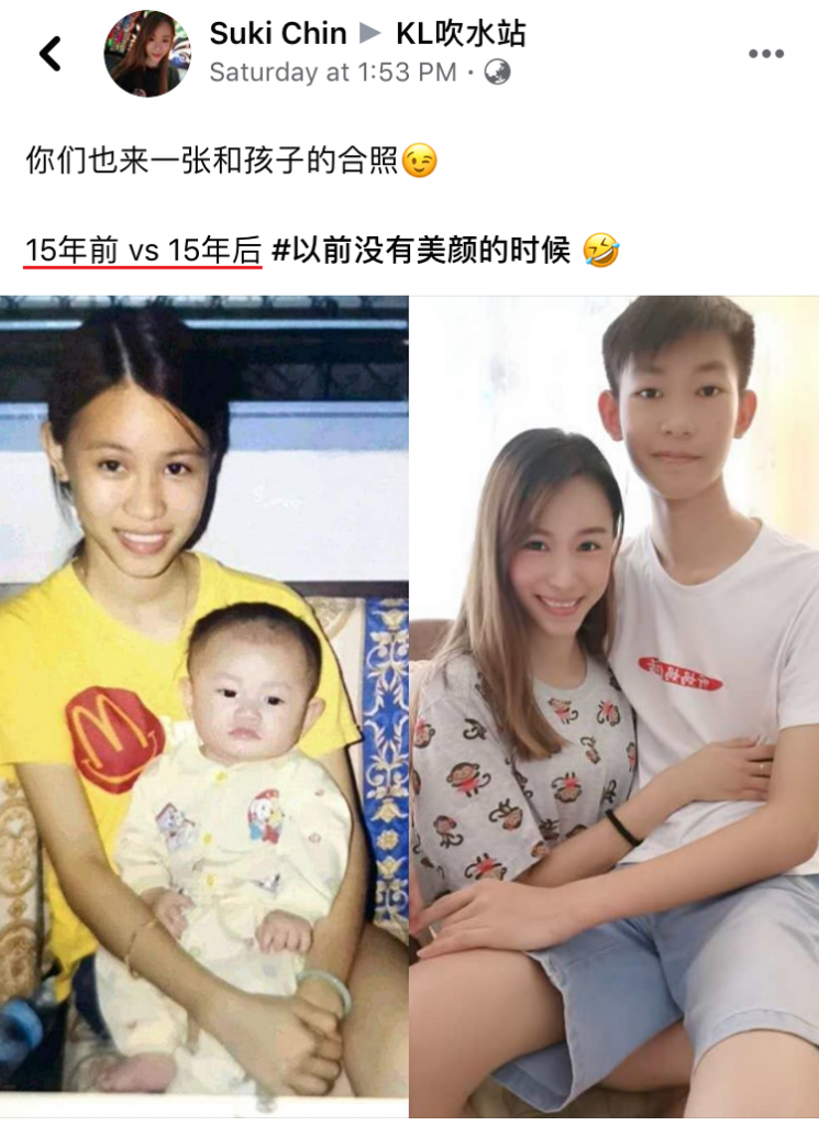 数日前,一位年轻妈妈Suki Chin 在KL吹水站纯粹分享了与其孩子15年前和15年后的对比照!但没想到因此引来网友们的热烈讨论而累积了2.8K的留言!