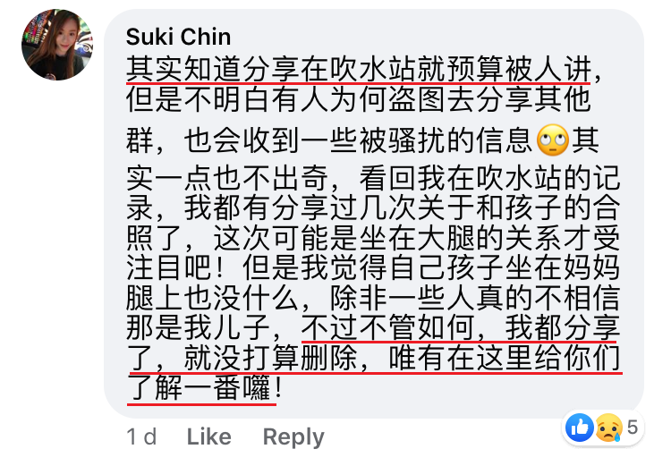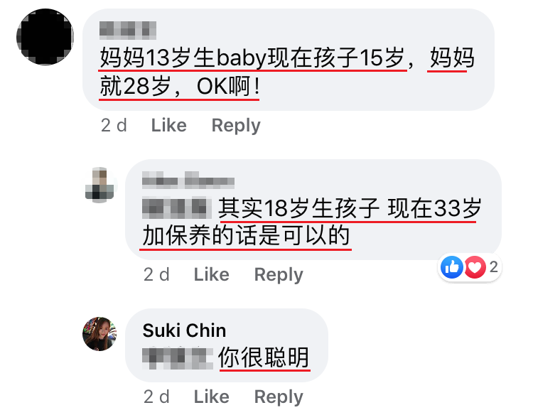 ▼部分网友还认为这一切都是年轻妈妈Suki Chin 的“照骗”美颜功能的效果而已!