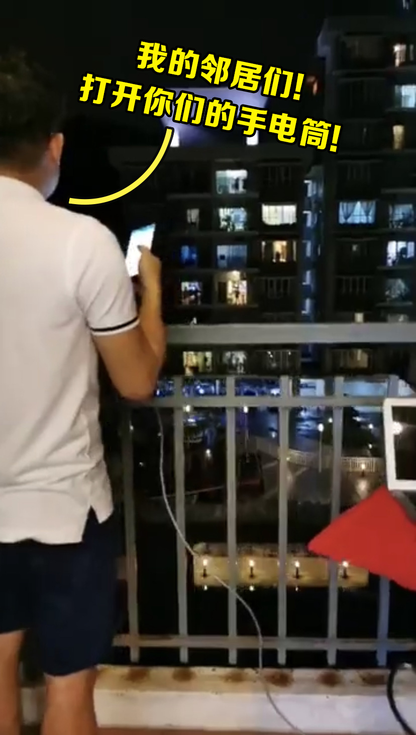 「阳台演唱会」在开始之前,David 请邻居们都把手机的手电筒打开,邀请大家一起来大合唱!各个方向的邻居听到 David 的声音后,都纷纷来到家里的阳台,配合着他的指令,一起 HIGH!