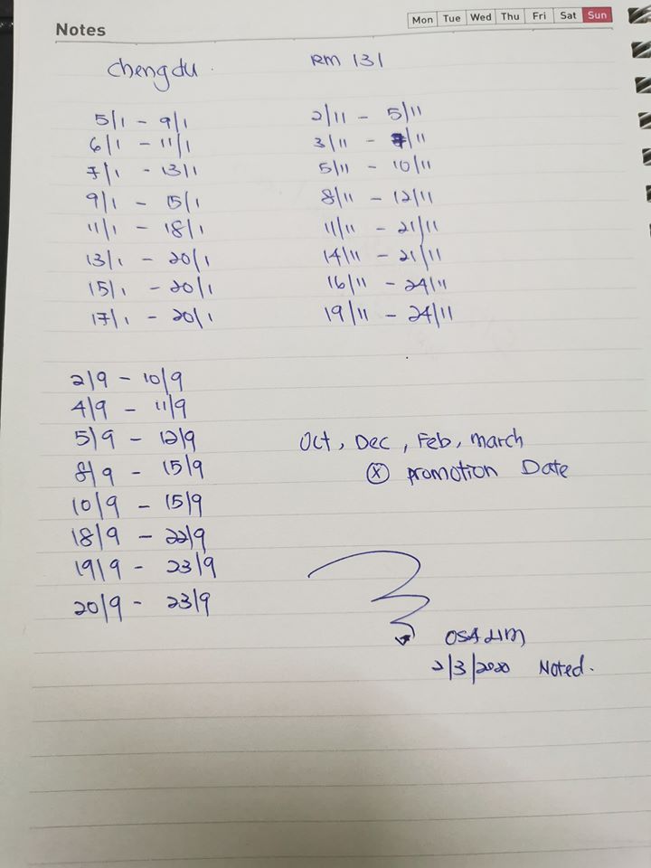 大约整理 AirAsia RM499 无限次飞优惠可以用的日期,还没买的人可以考虑好哦!!