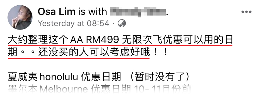 日前,一名大马女网友 Osa Lim 就在面子书分享了自己辛苦整理出来的亚航 Unlimited Pass 优惠日期,让大家看了就一目了然!