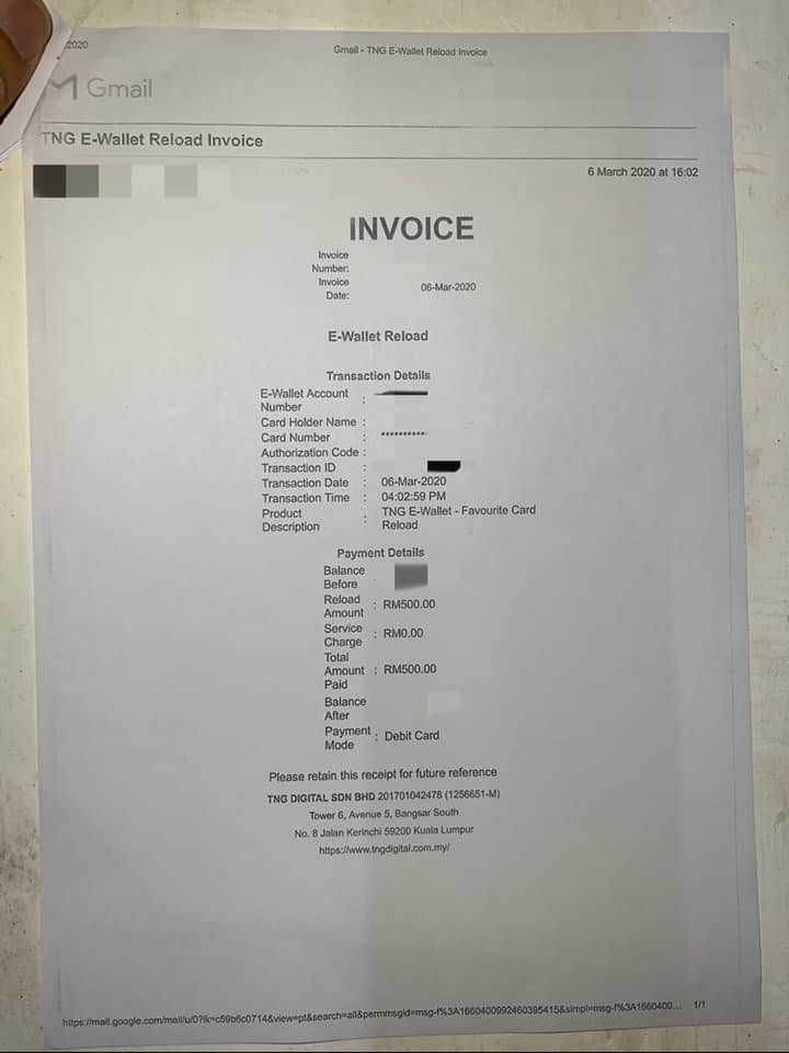 就在昨天下午,我做工到一半就觉得奇怪,我的 Gmail notification 怎么一直响?我就开进去看,才发现我的 TNG eWallet 一直在reload 钱(重点:我在做工,没有开到TNG App)。