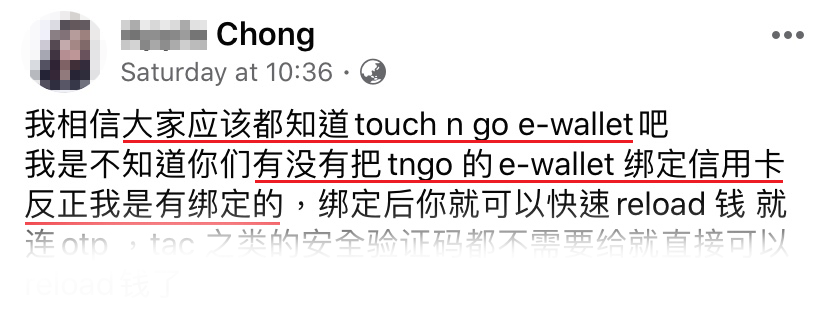 然而,近日一名大马女子 Chong 就在面子书发文分享自己的亲身经历,Touch ‘N Go eWallet 账号遭入侵!