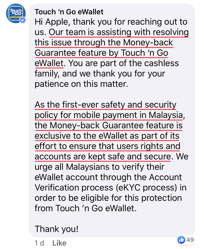 ▼ 随后,TNG eWallet 官方留言表示:将援助原PO获取赔偿。