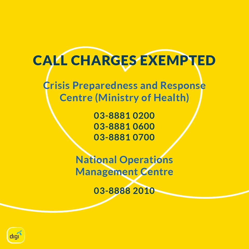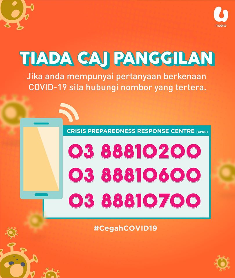 U Mobile 用户可免费拨打危机及应对中心(CPRC)和各州属卫生局热线(State Health Department)。