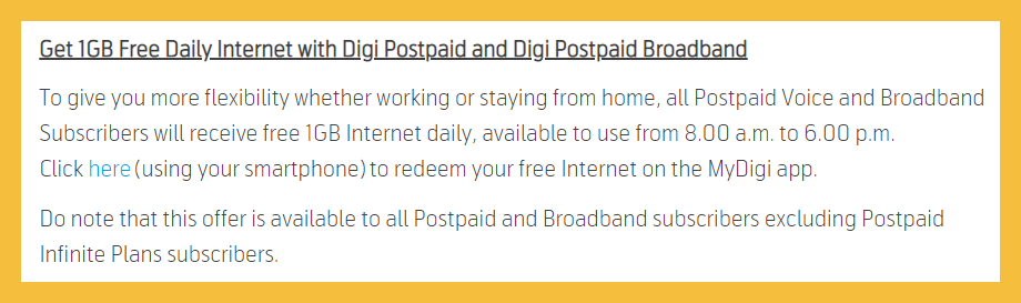 需要注意的是:这项优惠只限 Digi Postpaid 用户,不包括 Postpaid Infinite Plans 用户。
