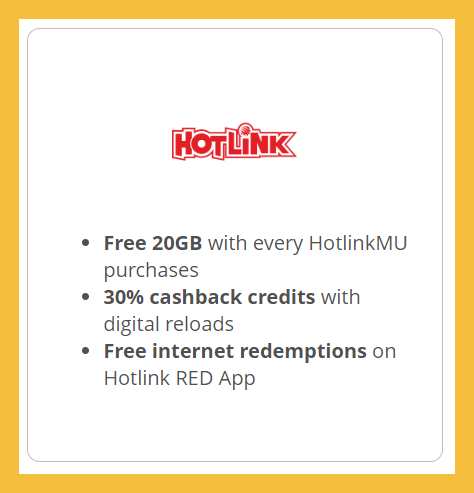 ▼ 而 Hotlink 用户也可通过 Hotlink RED App 购买 Hotlink MU 配套时,可免费获得20GB上网数据。加额可获得30%现金回扣。