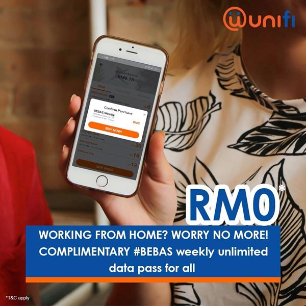 如果你是 Unifi Mobile 预付的用户,你将可 RM0 的价格购买7天无限量上网数据。优惠直到3月31日!