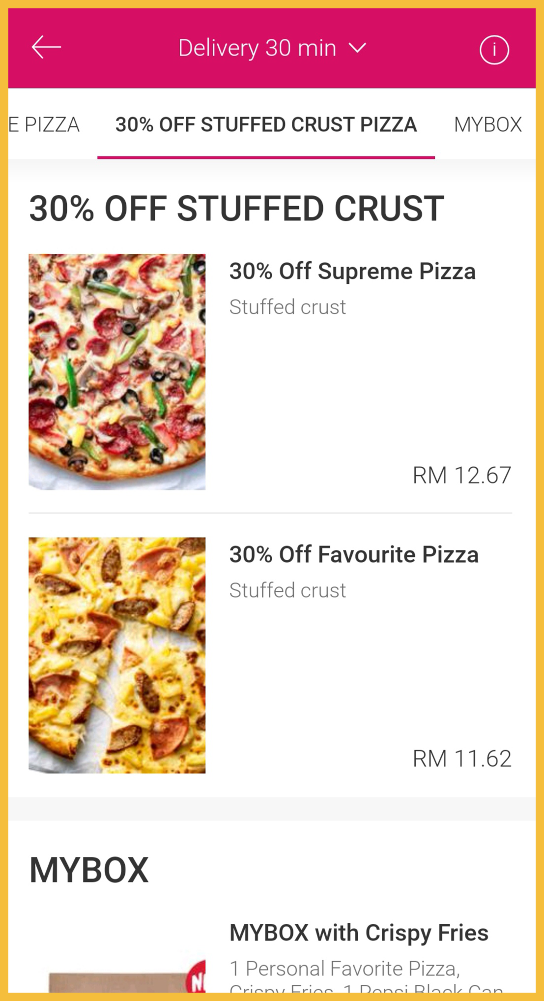 注意:所有 Stuffed Crust Pizza 系列可享有30%优惠!