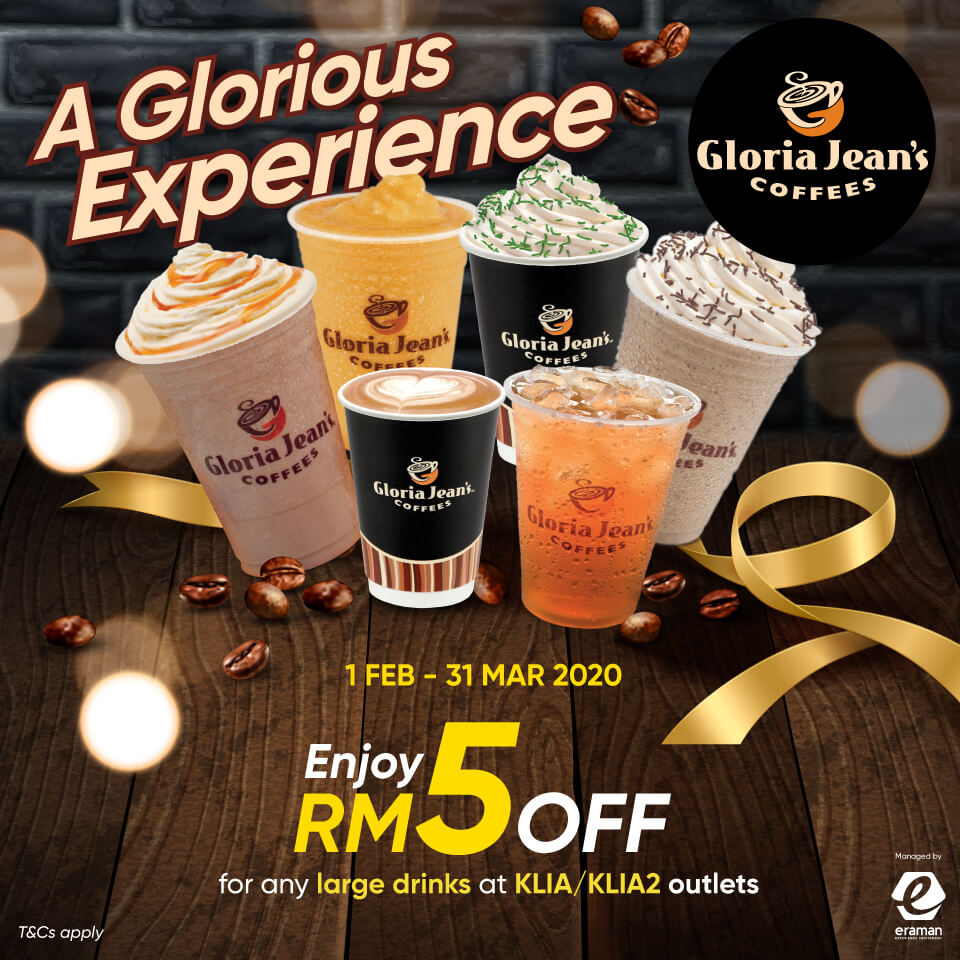 促销活动:在 Gloria Jeans Coffees 商店购买大杯饮料可享有RM5的折扣优惠