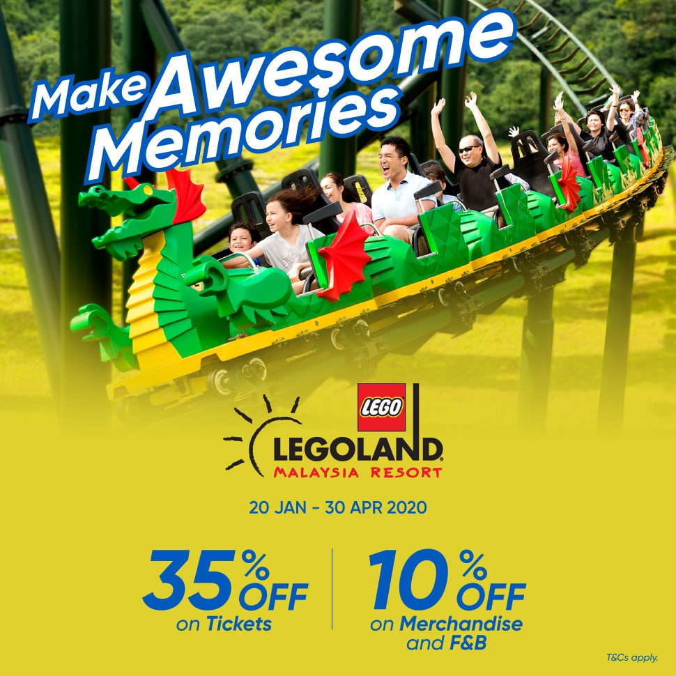 - 35%折扣于入场票—— 每笔交易最多可获得4张马来西亚 LEGOLAND® 的一日票/组合票(成人/儿童/老年人)。 入场仅在购票当天有效
