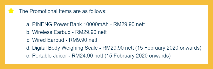 促销地点:只限西马分行(不包括 Premium Outlets / Roadshows / Atriums)