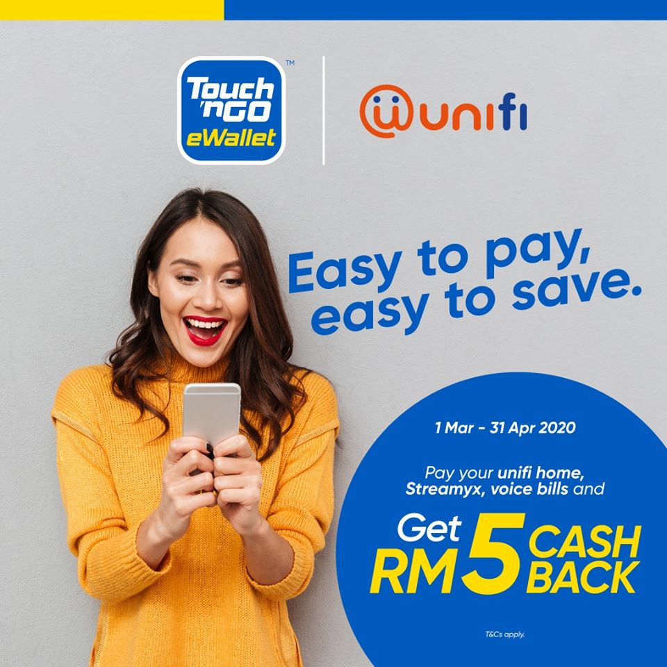 - 缴付 RM50 或以上 Unifi 账单可获得 RM5 现金回扣