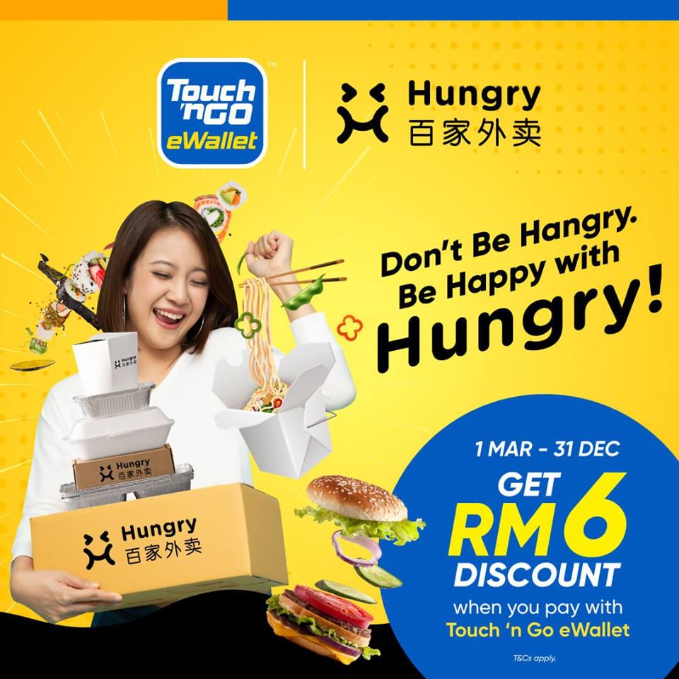促销活动:使用 Hungry 百家外卖—— 可获得 RM6 折扣优惠