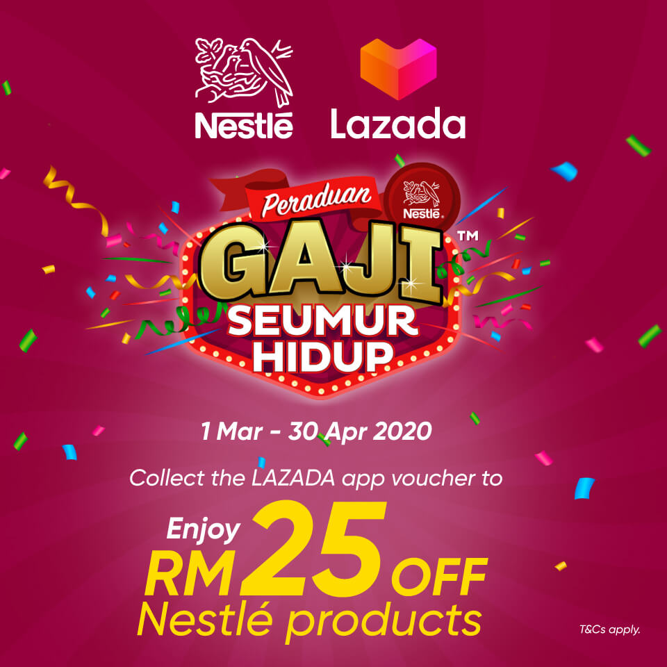 - 在Lazada 购买Nestle商品(最低消费RM100)可折扣于RM25