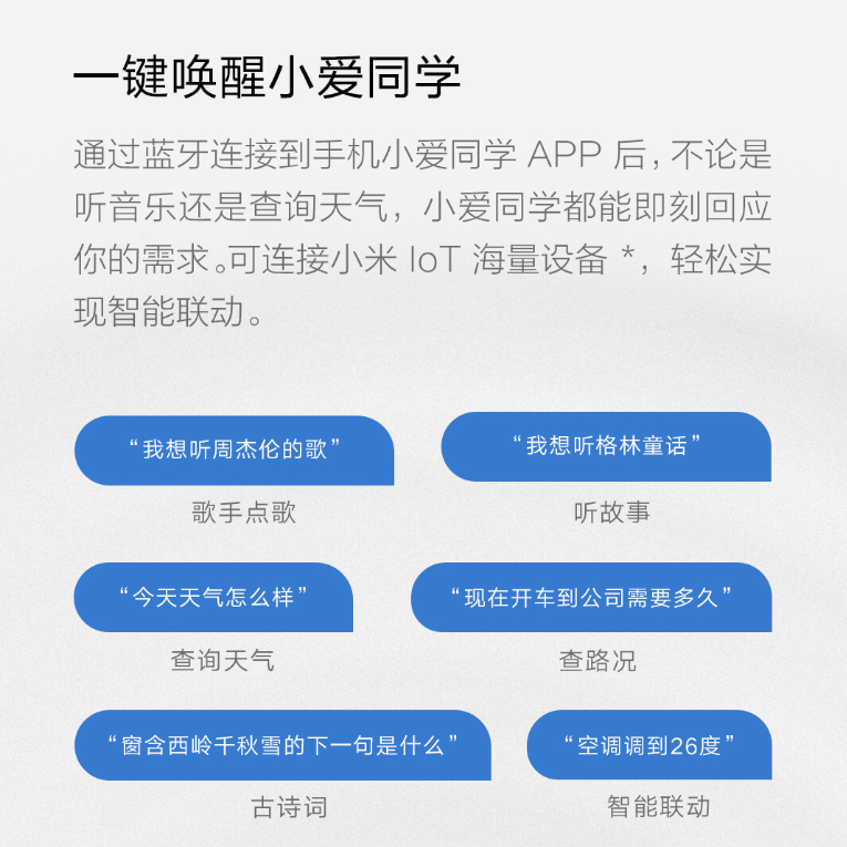 这么棒的「无线充蓝牙音箱」,你怎能不买呢?!它还有一项功能就是——通过蓝牙连接手机后唤醒“小爱同学”。无论你想听音乐还是查询天气,“小爱同学”都能即可回应你的需求哦!