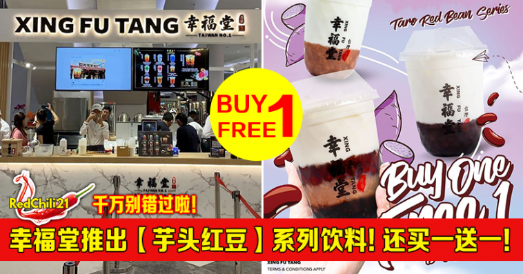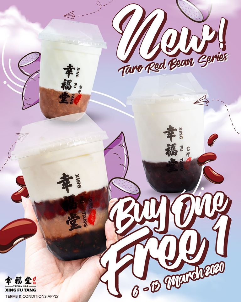 促销活动:幸福堂—— Taro Red Bean系列饮料买一送一