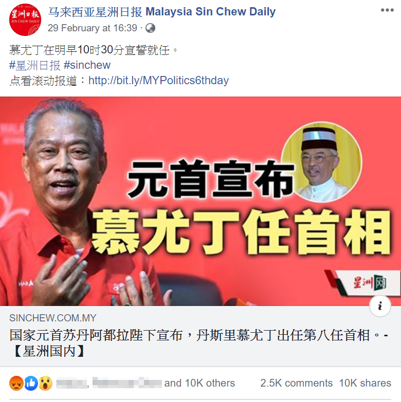大马政局陷入一波动荡后,上个星期六(2月29日)国家元首正式宣布,委任丹斯里慕尤丁成为大马第8任首相。