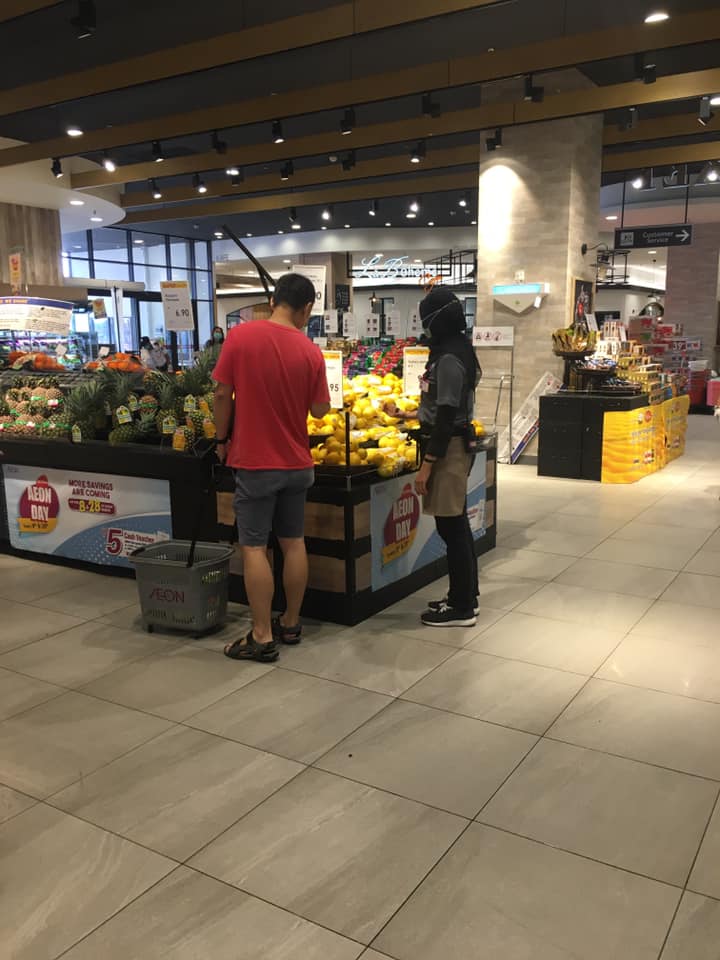 从照片中可以看到,不少年轻和年长的人夫,都前来 Aeon 超市帮老婆采购蔬菜和水果,但他们对于这方面却毫无头绪!Aeon 的员工们明白他们「太难了」,都纷纷很有耐心地给予他们帮助。