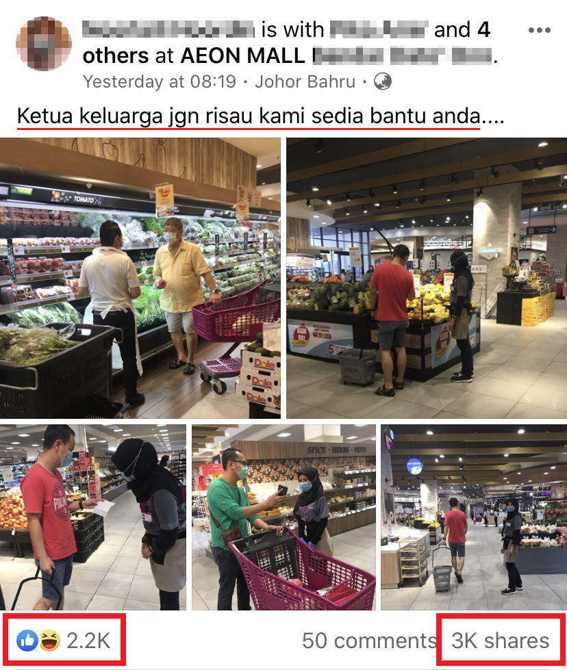 昨天,一名在 AEON 超市上班的网友在面子书分享几张照片,帖文里写道:「一家之主不用担心,我们已经准备好协助您们了!」