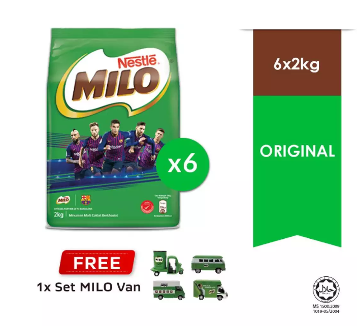 Chup Dulu RM155.40/6包 = RM25.90,这样算起来1包2KG的Milo只需RM25.90而且还送你4辆Milo Van模型哦!