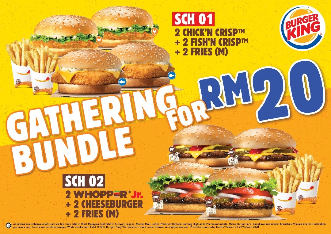 促销地点:Burger King 西马分行(除了Sunway Lagoon、Medini Mall、Johor Premium Outlets、Genting Highlands Premium Outlets 、Mitsui Outlet Park、Langkawi和机场分行。)