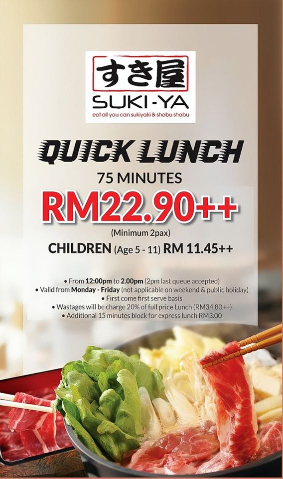 好消息来了!著名日式火锅 Suki-Ya 推出的 Express Lunch 自助餐大促销又回来啦!