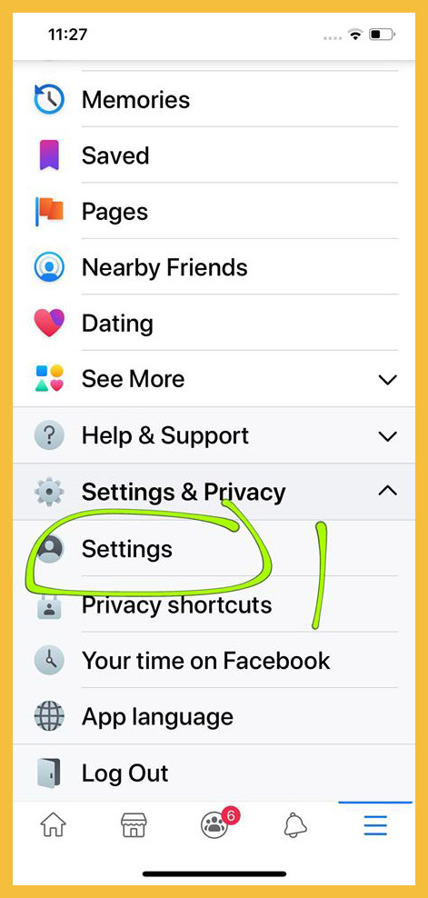 ▼ Step 1:打开手机里的 Facebook App,选择「设置与隐私(Settings & Privacy)」,接着点击「设置(Settings)」。