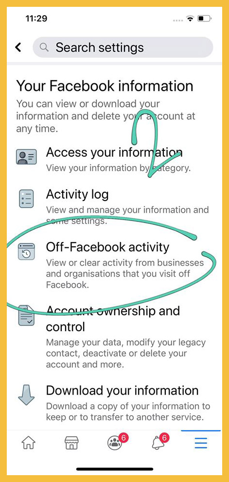▼ Step 2:点击「Facebook站外活动(Off-Facebook activity)」。
