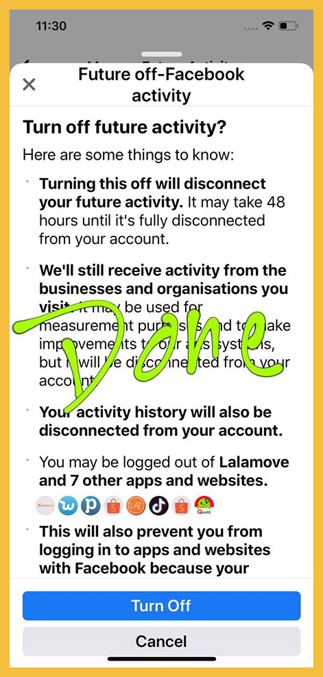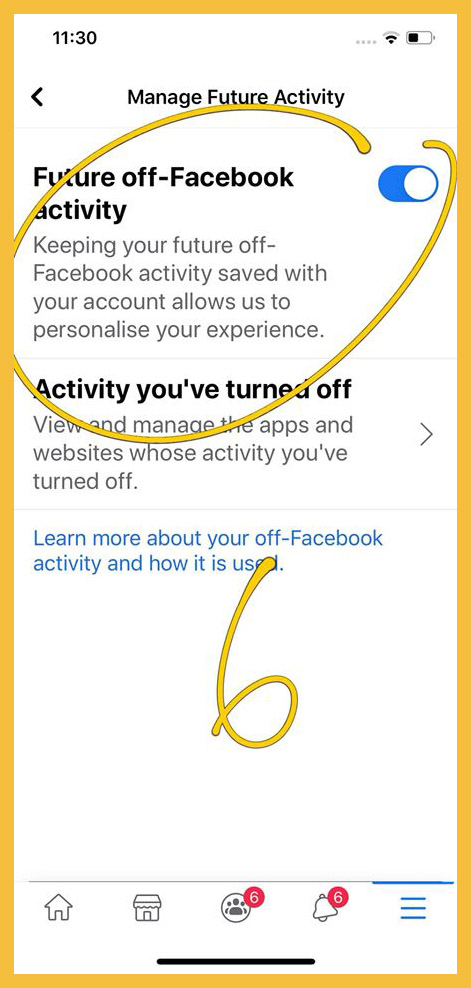▼ Step 6:将「今后的 Facebook 站外活动(Future off-Facebook activity)」关闭。