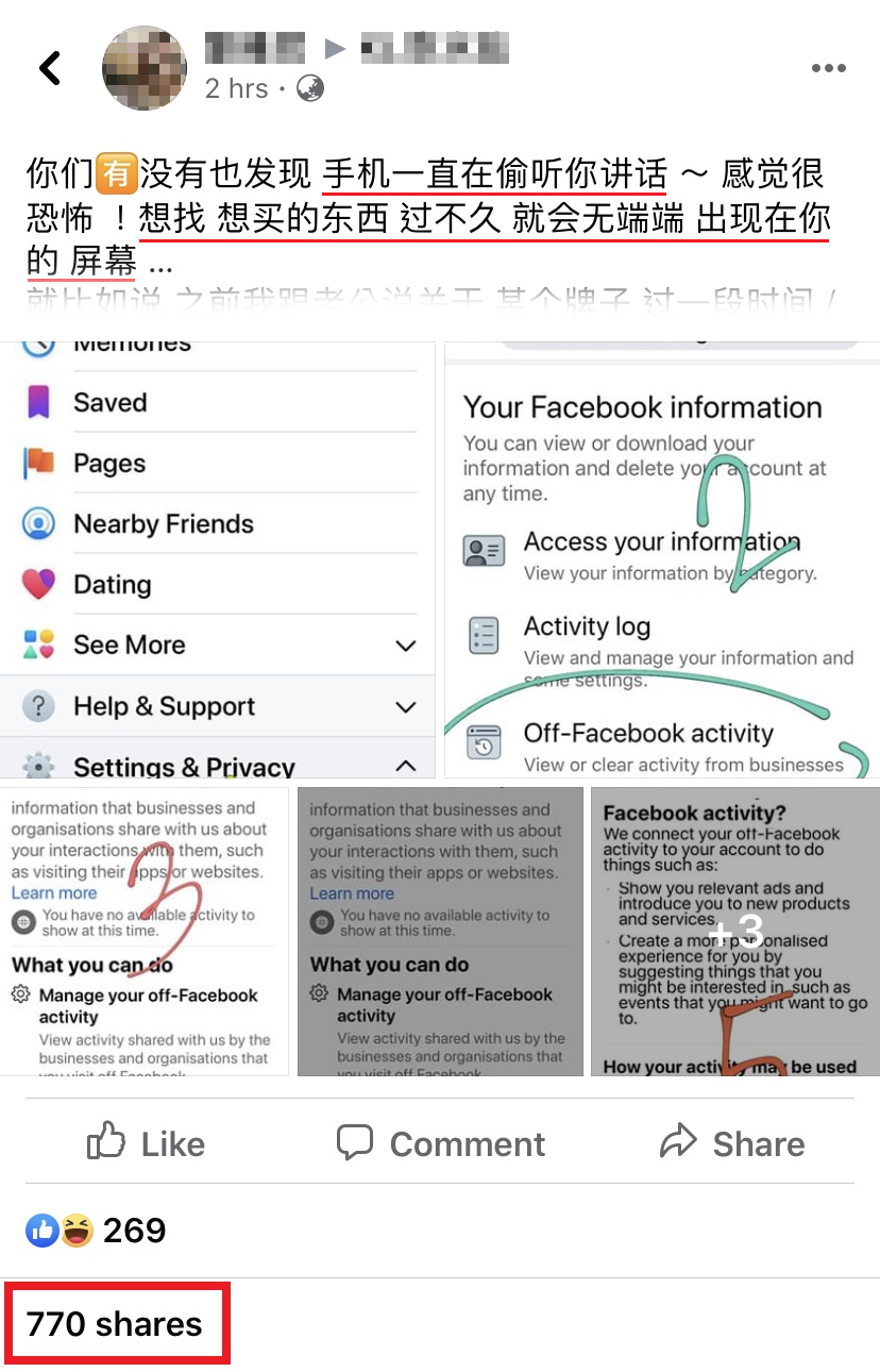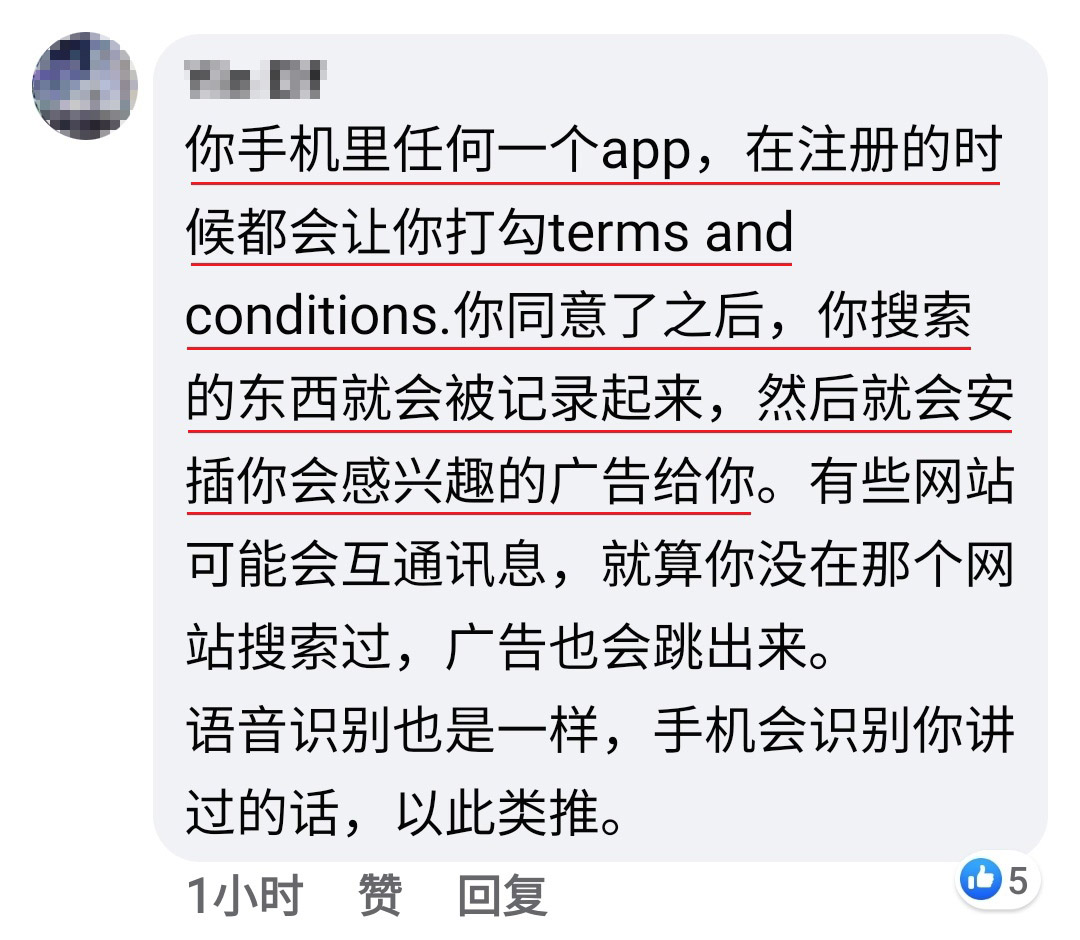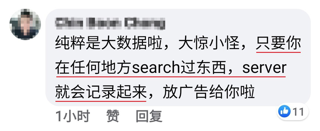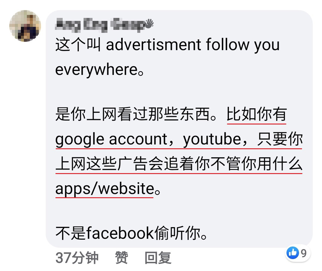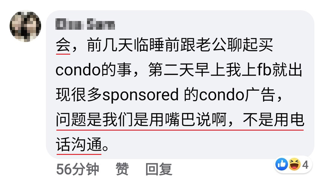 就比如说:之前我跟老公说关于某个牌子,过一段时间/隔一天,Facebook 就有出现了关系这些物品。