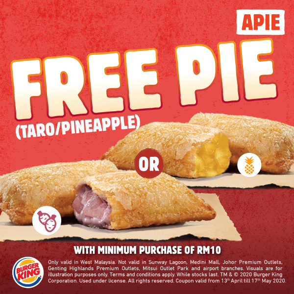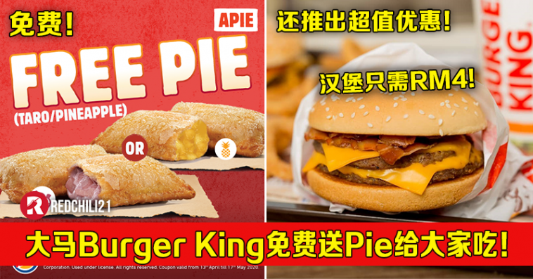 促销活动:Burger King —— 20个超值优惠劵及免费送Pie