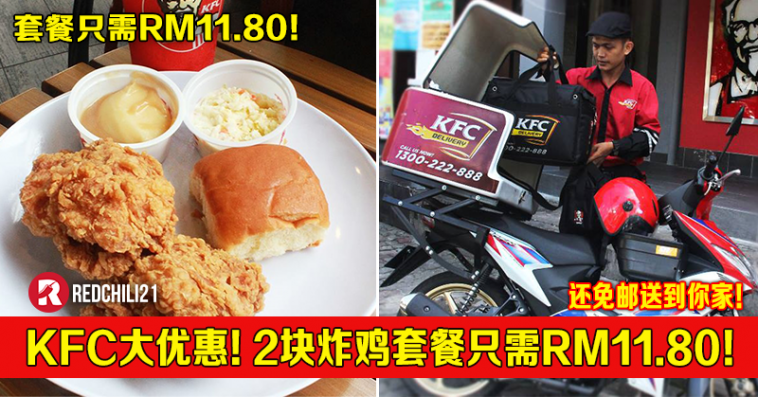 大马KFC大优惠!2块炸鸡套餐只需RM11.80!还免邮送到你家!