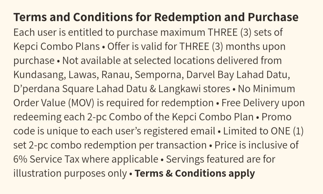 促销活动:KFC —— 【Kepci Combo Plan】套餐只需RM59