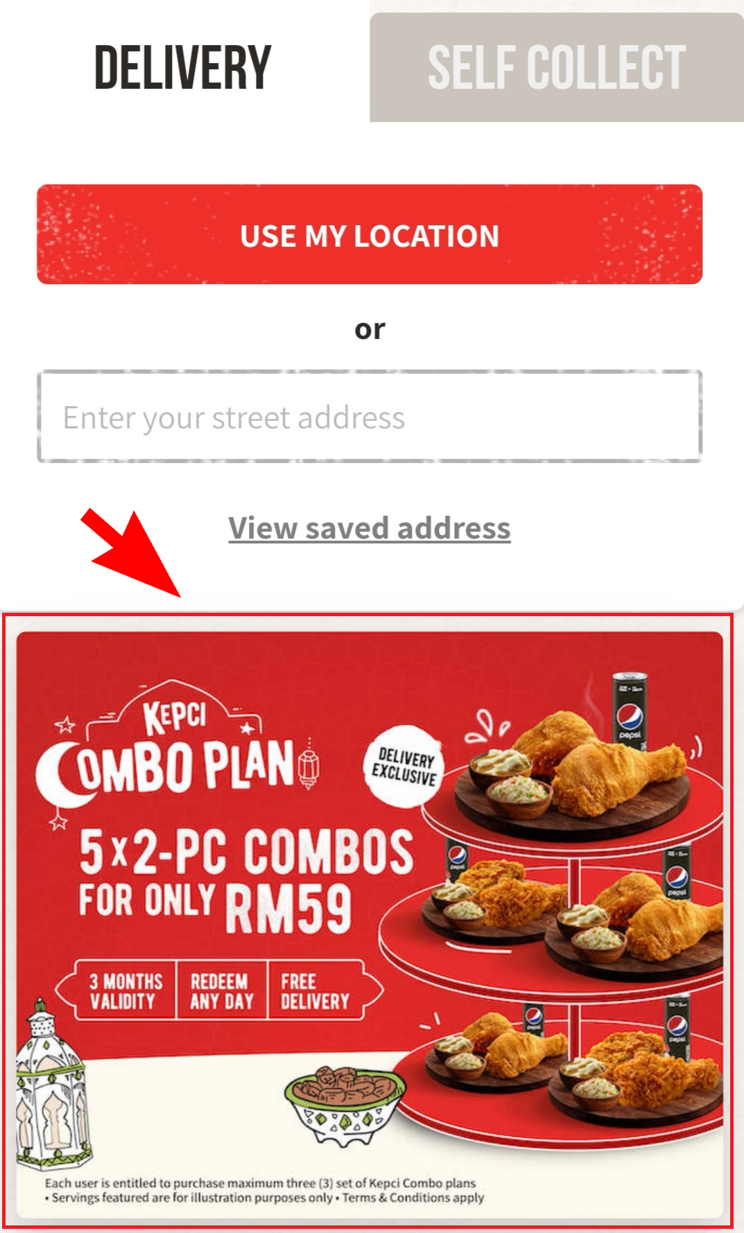 步骤1:下载 KFC App 及注册账号后,点击【Kepci Combo Plan】 !