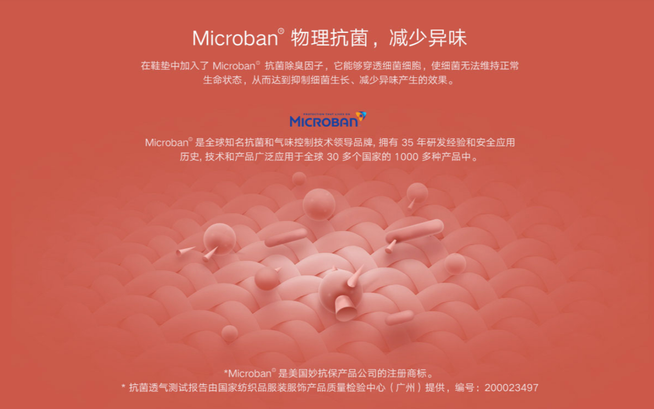 ▼ 在鞋垫中还添加 Microban 抗菌除臭因子,可抗菌及减少异味。