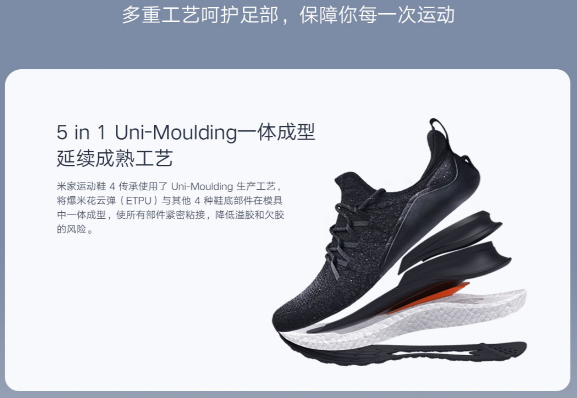 ▼ 这款【米家运动鞋4】采用轻量高弹爆米花发泡的技术,提升中低软弹,减轻鞋子的重量,并且可提升足部的舒适度。