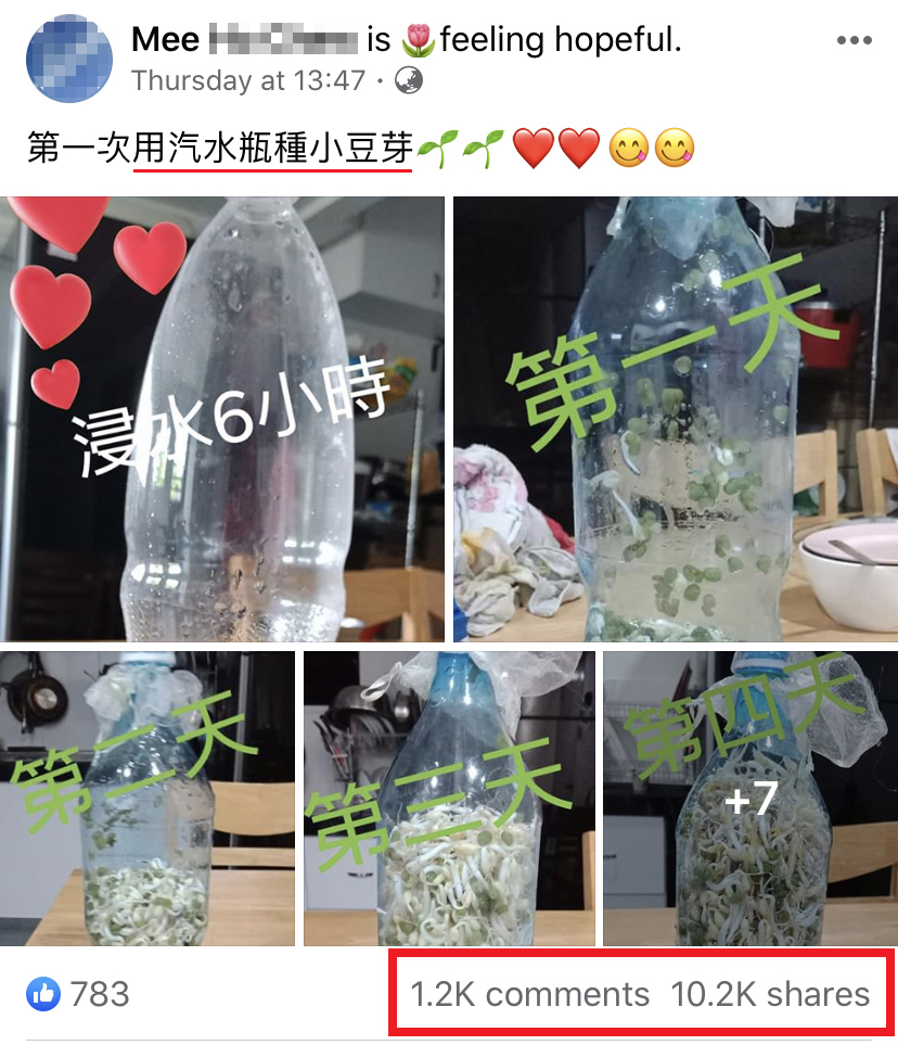 大马行动管制令来到了第三个星期,家里的蔬菜还够吃吗?不如自己动手种一种豆芽来吃吧!近日一名大马网友通过面子书分享自己种豆芽的新的,引起上万人疯传!