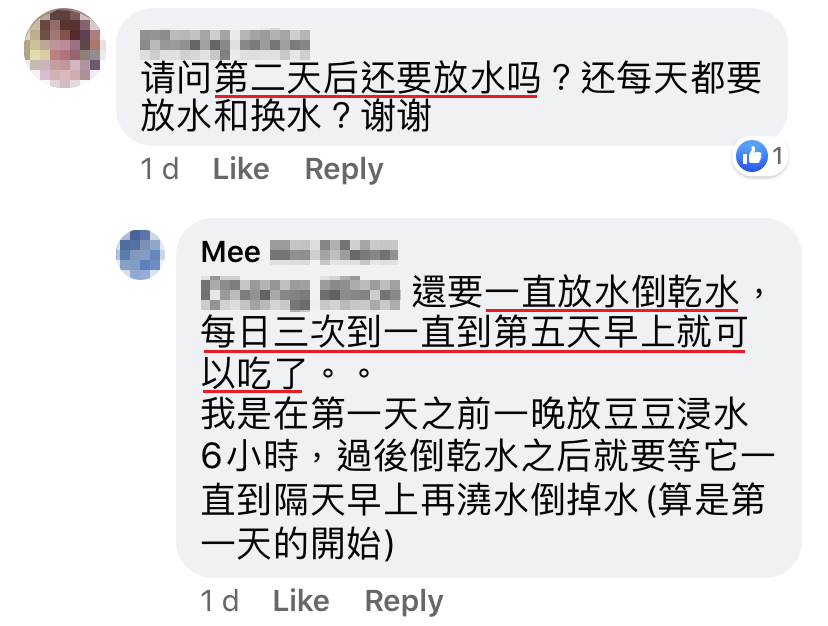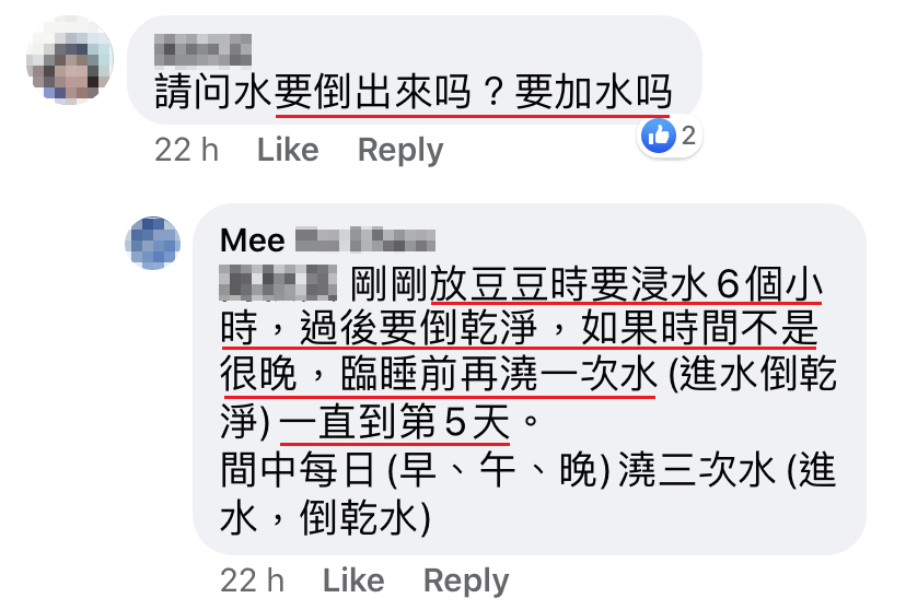 原PO在帖文里分享了她种植豆芽的整个过程,对于网友们留言问的问题,她也仔细地一一回答,让网友们一看就明白!