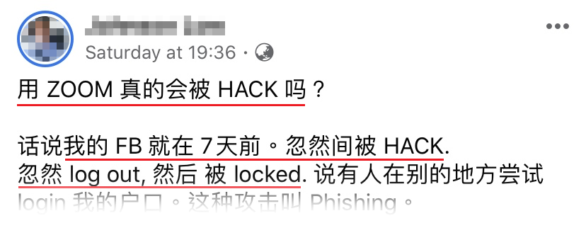 所以总结就是:可能我的 Zoom 是用和 Facebook 一样 email 和密码,而这些资料就被 hacker 尝试用来登录,过后被 Facebook block 了。过后我赶紧的去换了 Zoom 的密码,应该算是解决了。