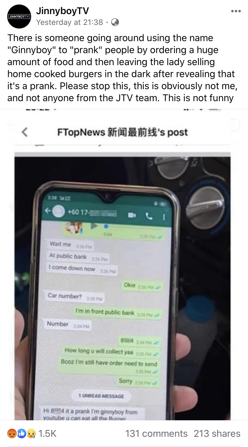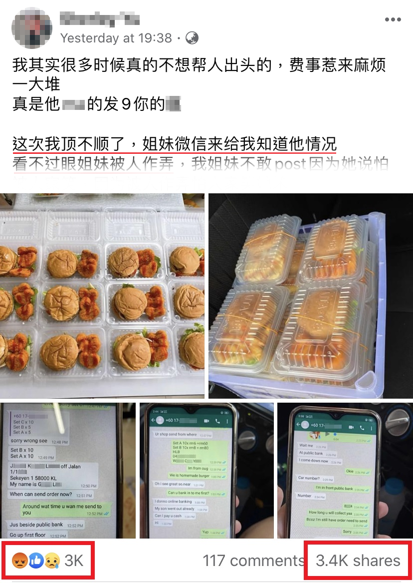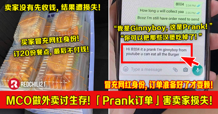 近日,一名大马网民在面子书分享自己姐妹的亲身经历。为了生存而决定开始做外卖生意,却遭到顾客冒充知名网红(Youtuber)的名义整蛊行骗!
