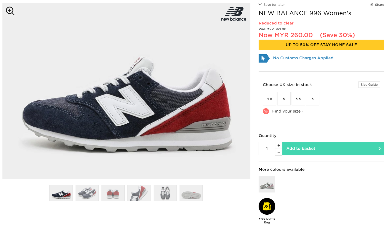 ▼ NEW BALANCE 996 Women’s – 只需RM260(原价 RM369)!