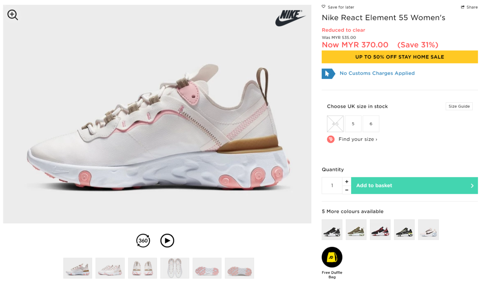 ▼ Nike React Element 55 Women’s – 只需RM370(原价 RM535)!