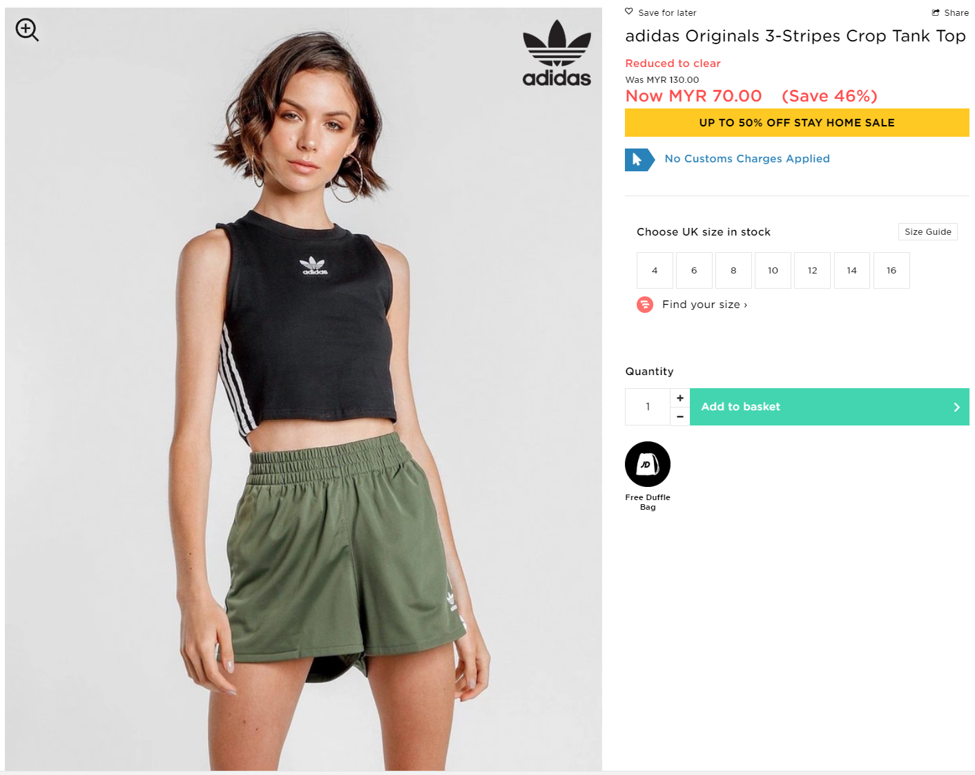 ▼ adidas Originals 3-Stripes Crop Tank Top – 只需RM70(原价:RM130)